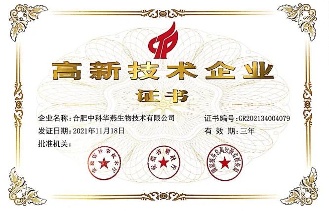 2021年11月,合肥中科華燕生物技術有限公司憑借在護膚領域的技術研發能力、科技成果轉換能力、持續的創新能力,以及良好的企業發展前景等優勢,榮獲”高新技術企業“認證,公司帶領”燕肌源“品牌正式邁入國家高新技術企業行列!